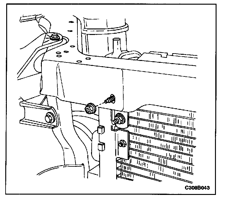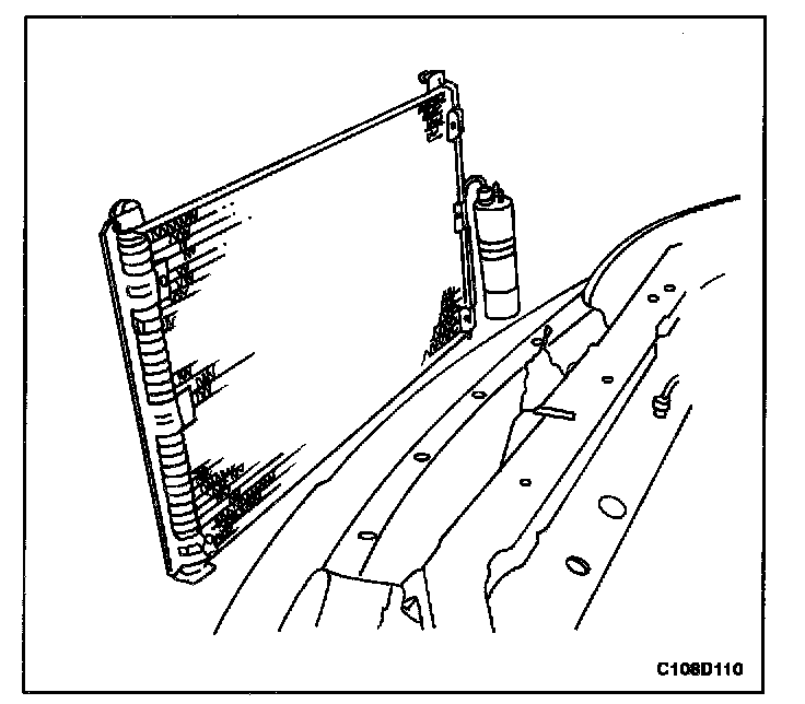9. Tilt the condenser to the rear away from the radiator mount support.