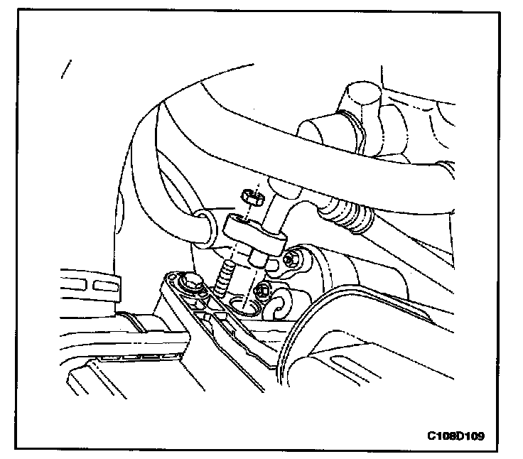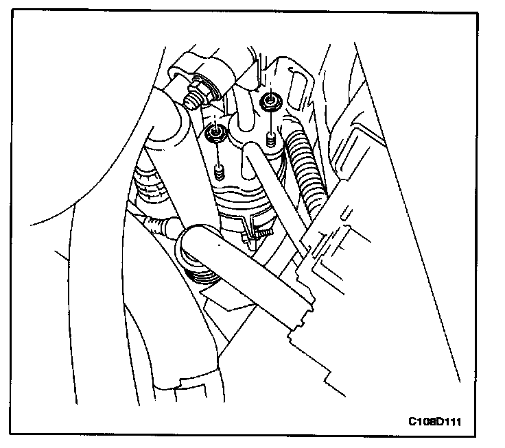 Tighten the discharge hose connecting block-to-condenser retaining nut to 16 N.m (12 lb-ft).