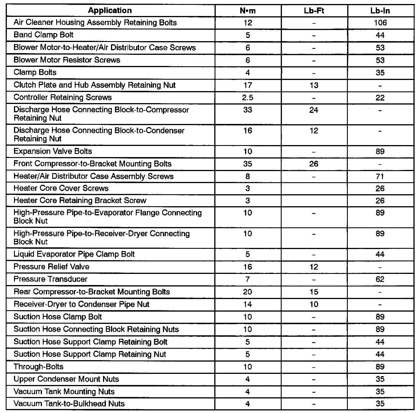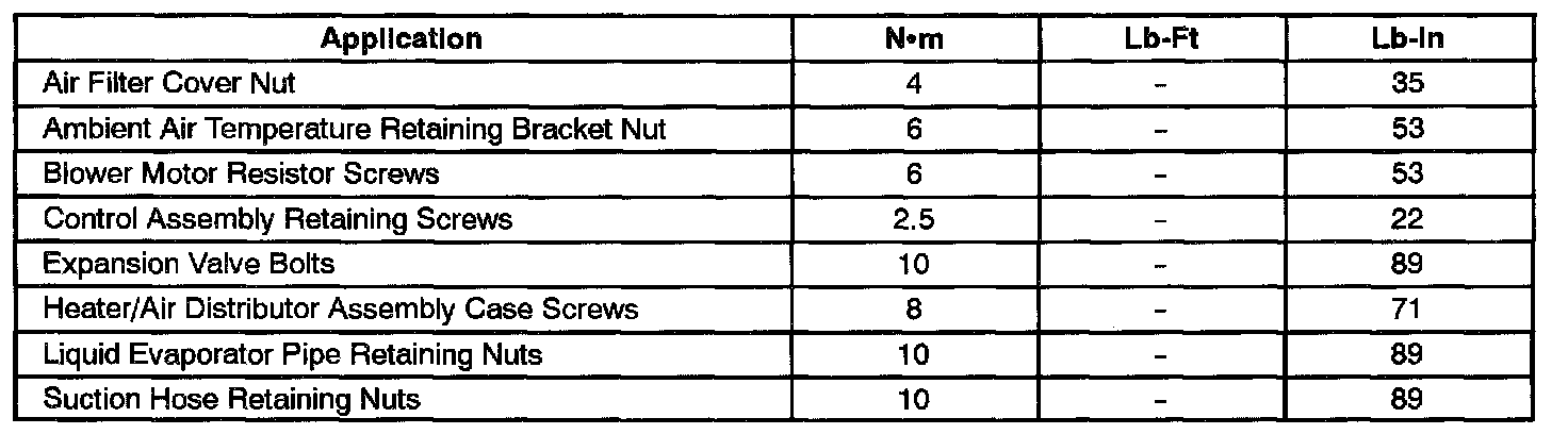 Fastener Tightening Specifications: