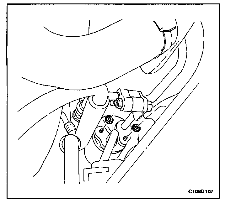 Tighten the high-pressure pipe-to-receiver-dryer connecting block nut to 10 N.m (89 lb-in) and the receiver-dryer-to-condenser pipe nut to 14 N.m (10 lb-ft).
