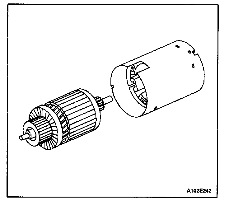 1. Clean all of the starter motor parts. Do not use grease-dissolving solvents for cleaning the armature and the field coils.