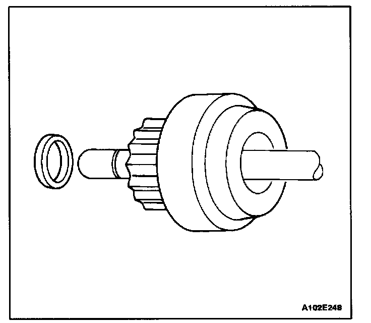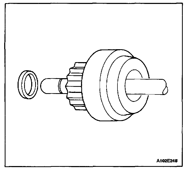 3. If full disassembly of the starter and the solenoid was performed, begin reassembly by placing the gear support and collar on the driveshaft assembly.