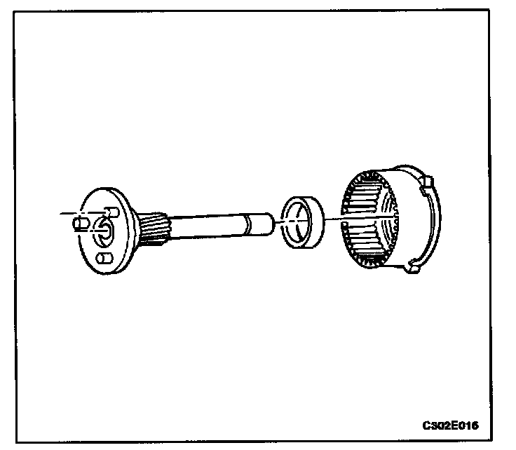 20. Remove the collar and the locking ring from the groove in the driveshaft.
