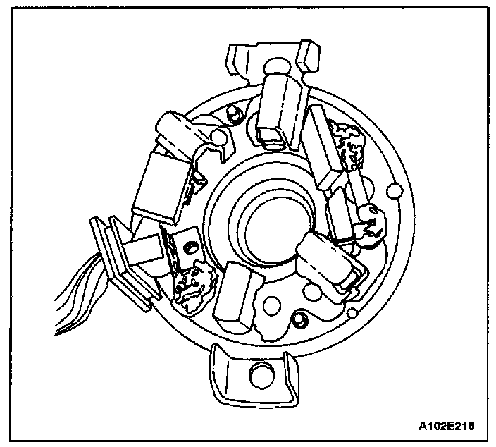 4. Inspect the brushes, the pop-out springs, and the brush holders for wear and damage. Replace the assembly, if needed.
