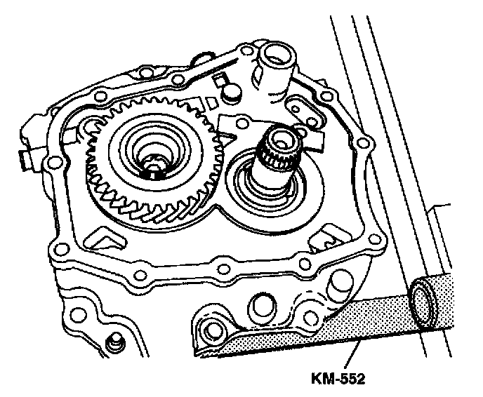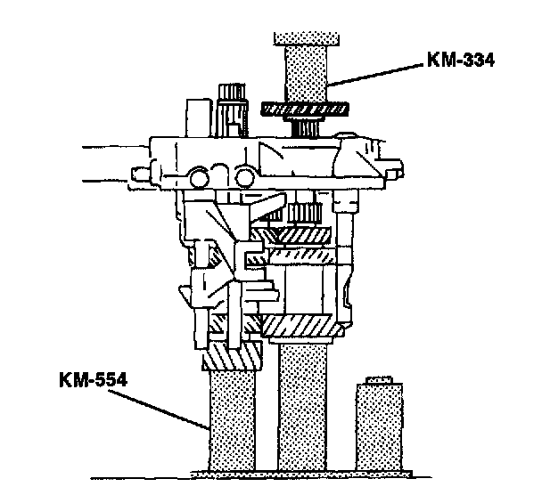 18. Install the input drive fifth gear using the installer KM-554 and the installer sleeve KM-334.