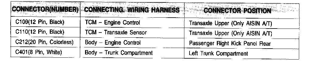 Connector Information Chart: