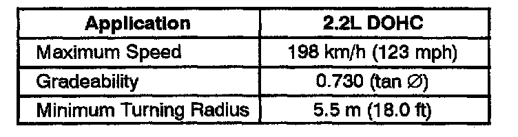 AW-50-40 LE 4-spd A/T, Transaxle Performance Speed: