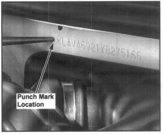 1. Raise the Hood and verify that the campaign has not been completed previously by checking for a punch mark directly to the left of the VIN which is stamped in the passenger side of the bulkhead.