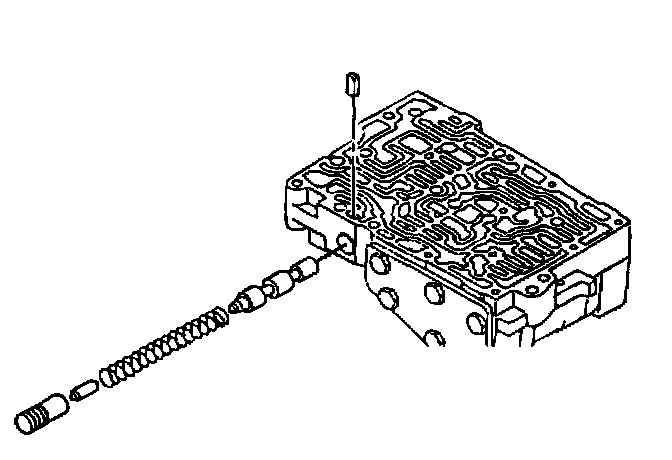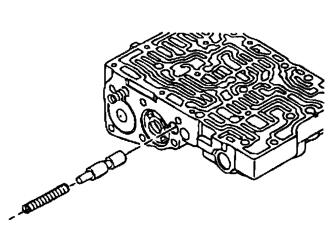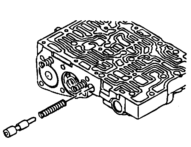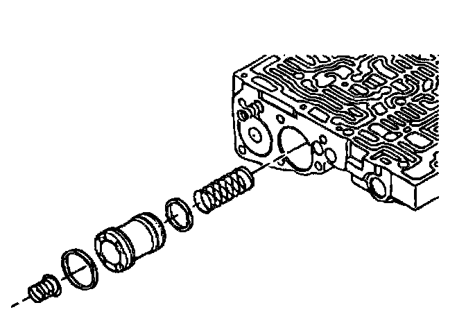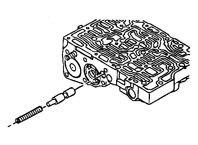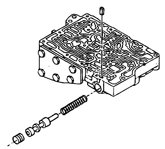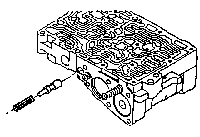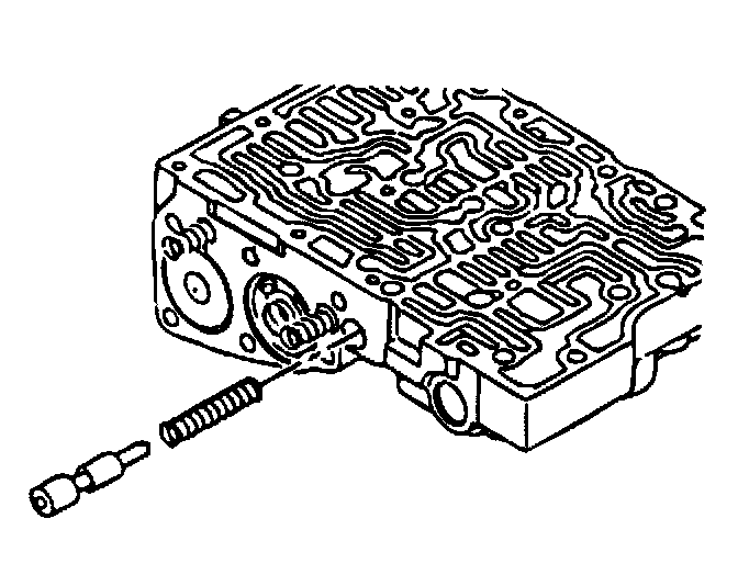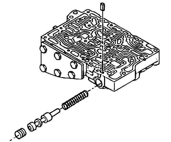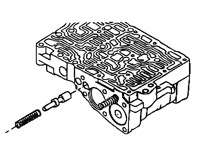 6. Install the lockup control valve and the valve spring. Insert the lockup control plunger in the lockup control plunger sleeve and install into the valve body. Push in the key.