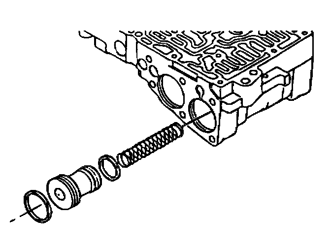Notice: Coat the valve, spring and retainer with Texaco 1854 automatic transmission prior to assembly.