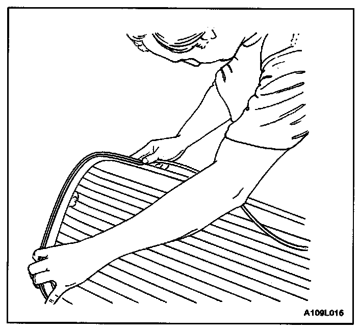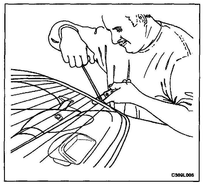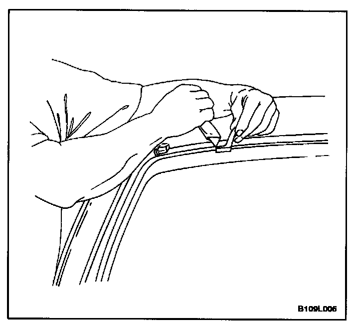 9. Check for waterleaks by pouring water on the rear window. If a leak is found, dry the window and fill the area that leaks with adhesive. If the leak persists, remove the rear window and repeat the entire procedure.