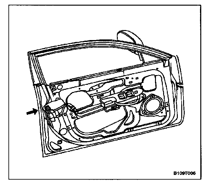 2. Remove the front door trim panel. Refer to Interior Trim.