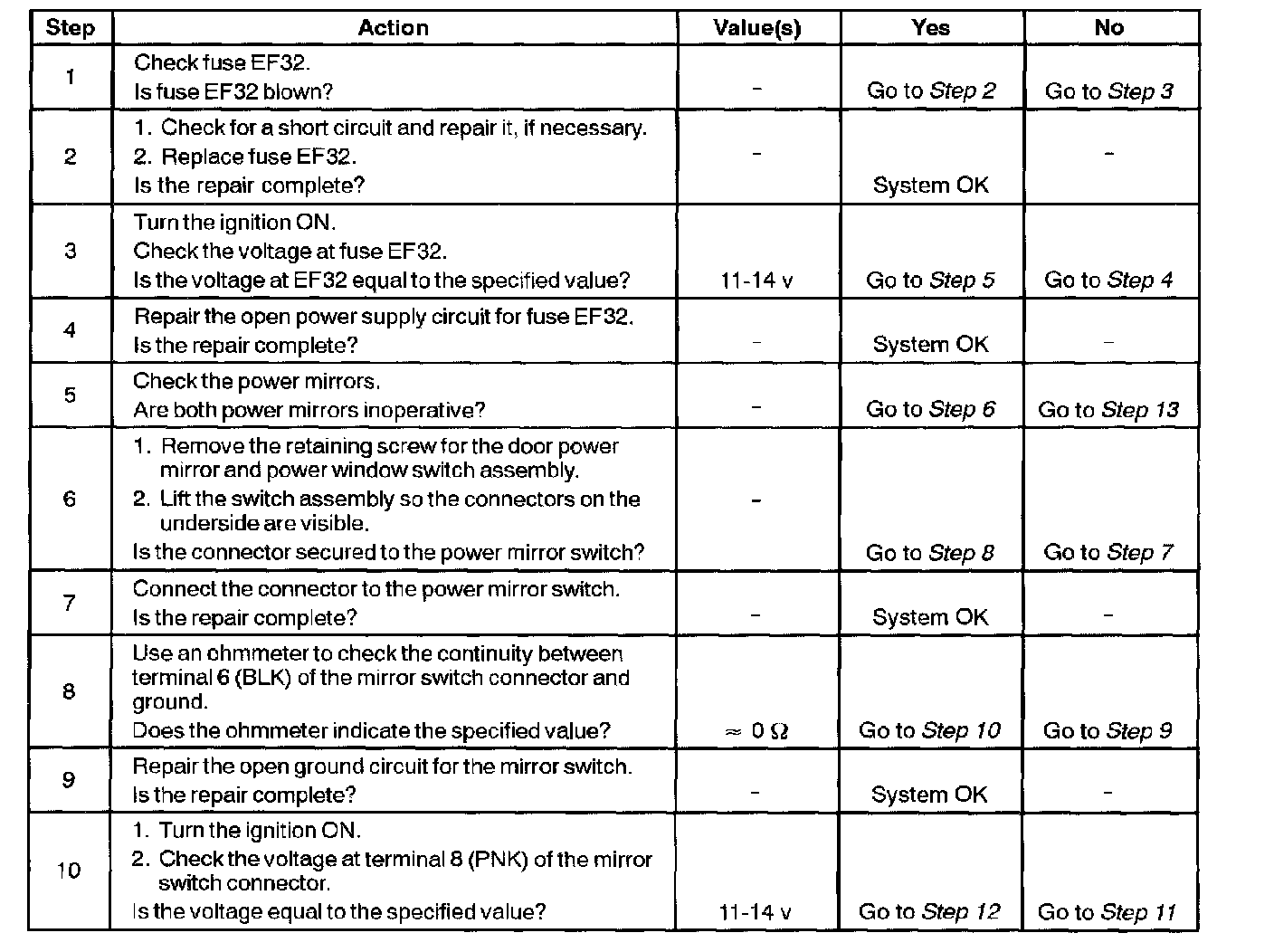 Outside Rearview Mirrors Do Not Adjust (Step 1 - 10):