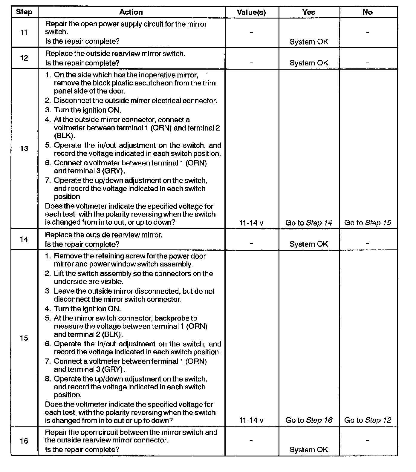 Outside Rearview Mirrors Do Not Adjust (Step 11 - 16):