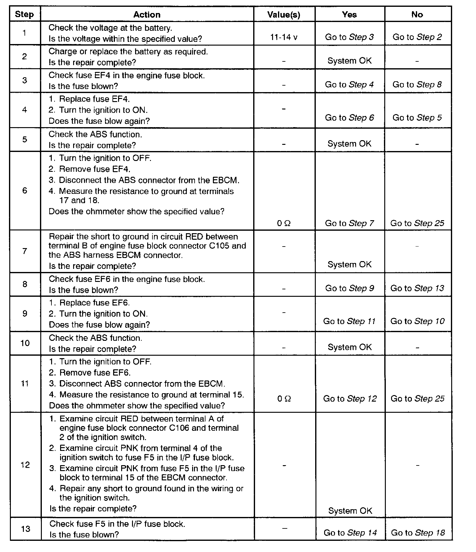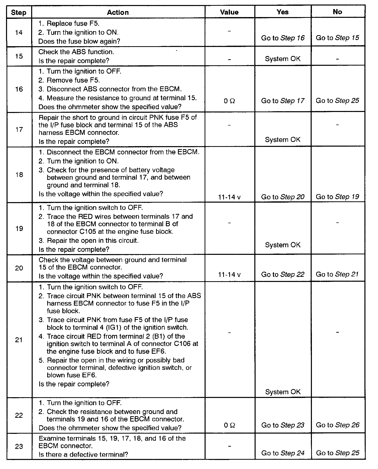 11. This step begins the check for voltage at the EBCM end of the ABS harness.