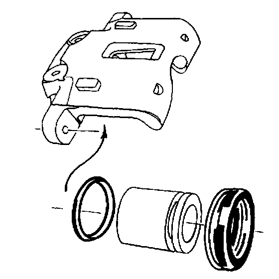 Important: Do not use a hone or any other procedure to remove material from the piston or caliper bore.