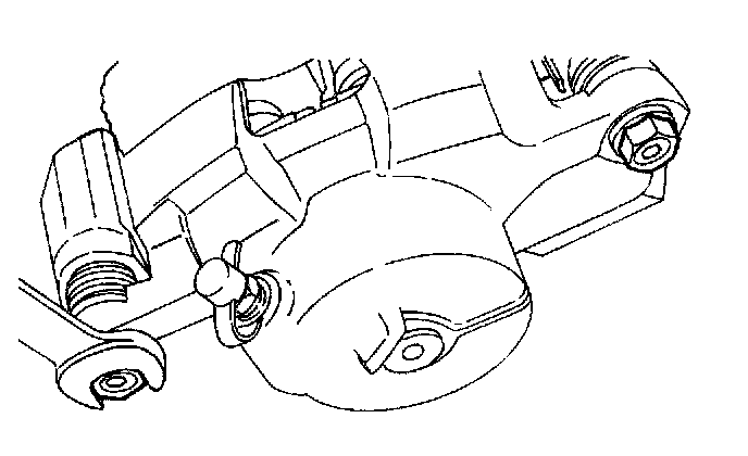 Important: Do not damage the piston dust seal when the caliper is pulled downward to reinstall the lower mounting bolt.