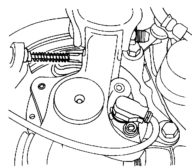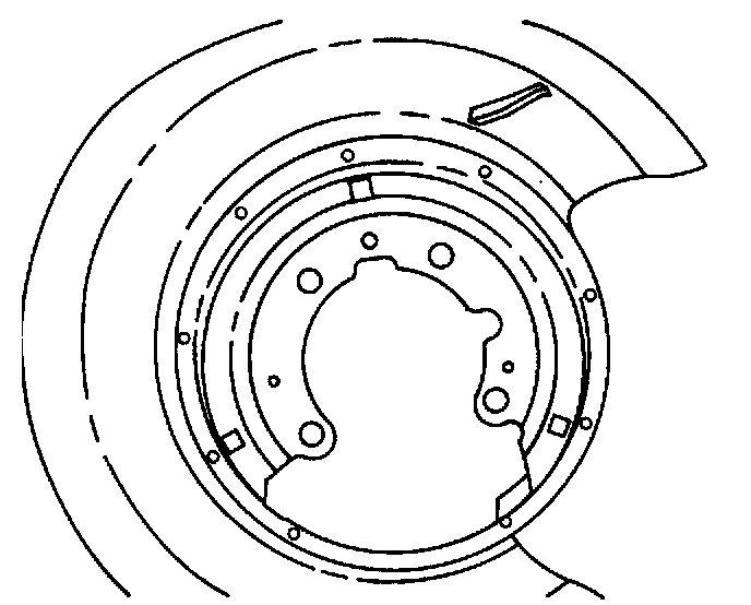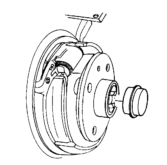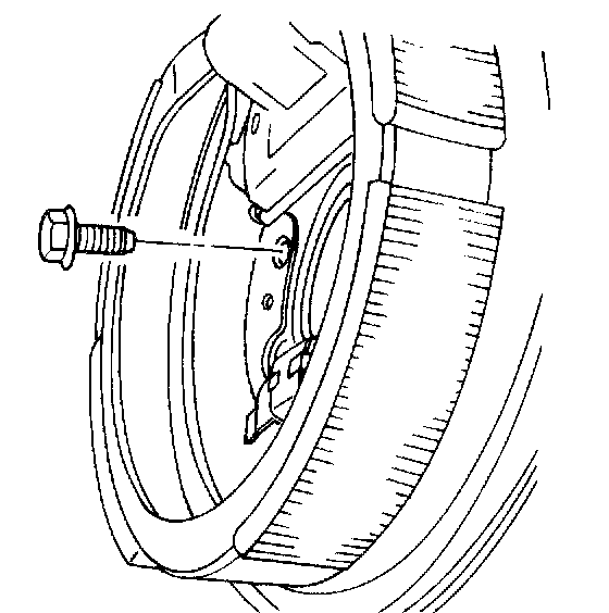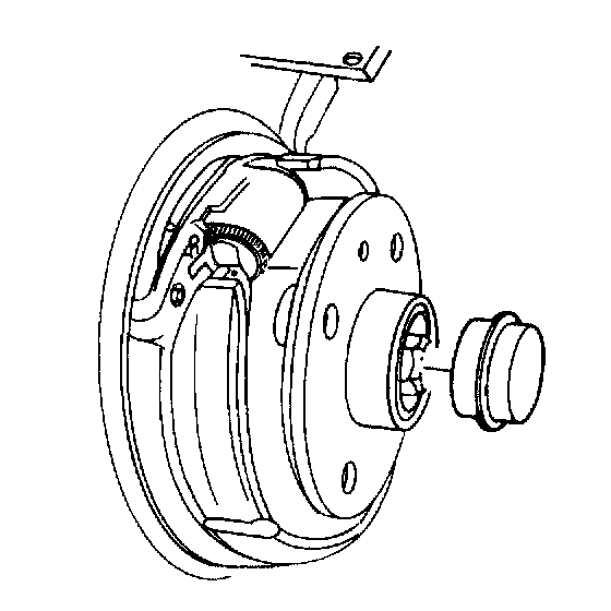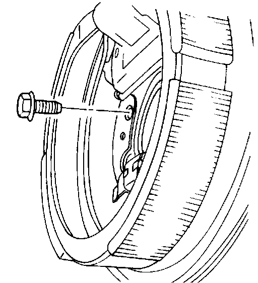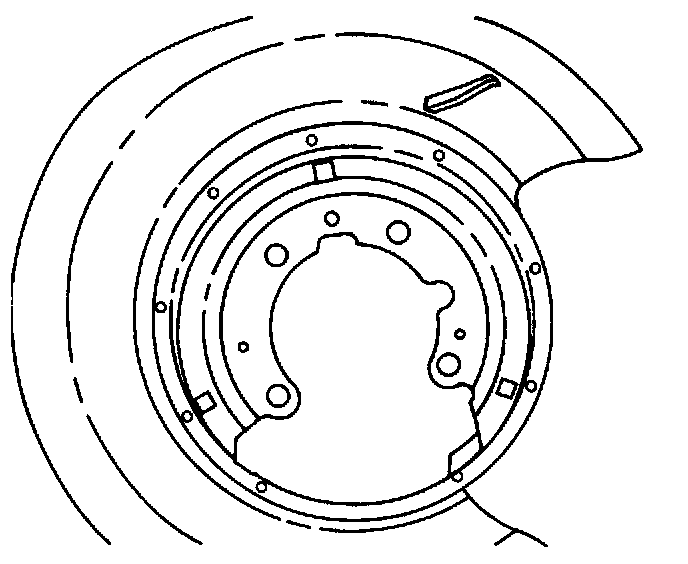 8. Remove the screw that secures the parking brake shoe hold-down spring assembly to the backplate.