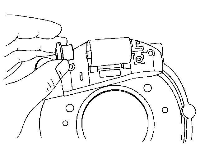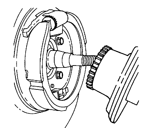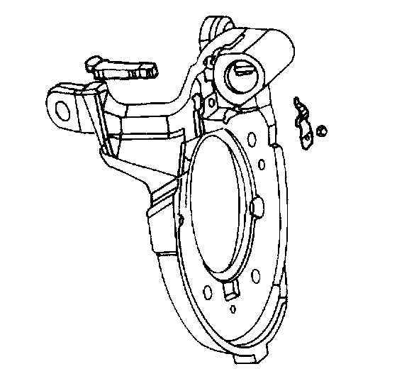 11. Install the adjustment screw and the adjustment nut into the backing plate actuation mechanism on the adjustment pawl side. Keep the shoe slot parallel with the backing plate face.