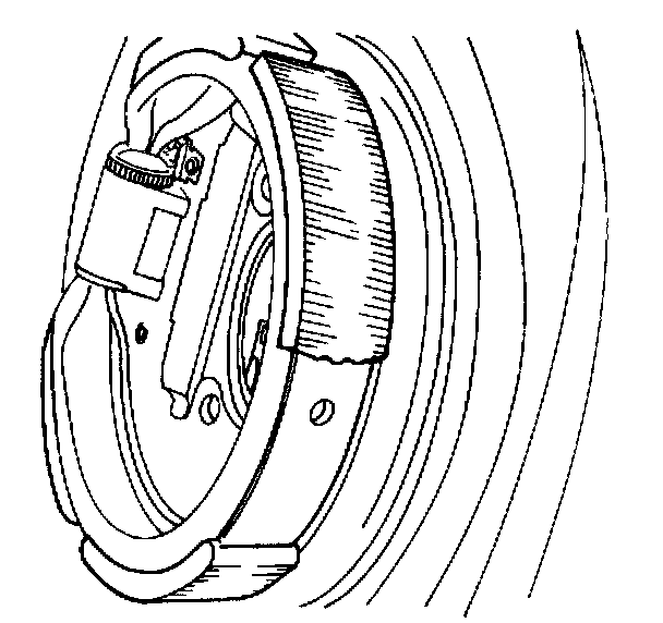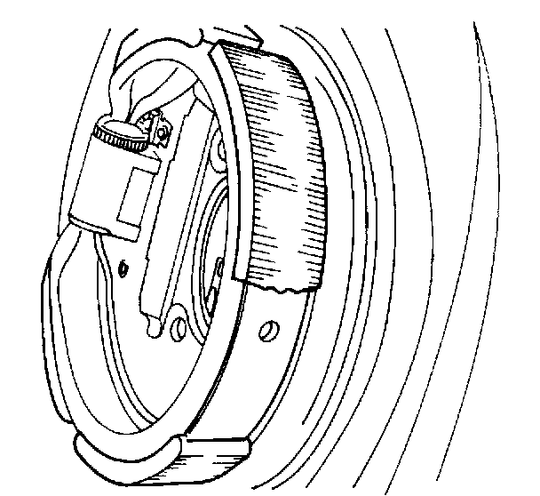14. Install the parking brake shoe engaging the shoe tips in both the adjusting screw and the tappet slots.