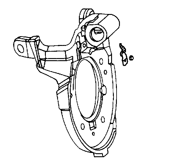 7. Remove the splash shield/backplate/parking brake shoe assembly from the steering knuckle.