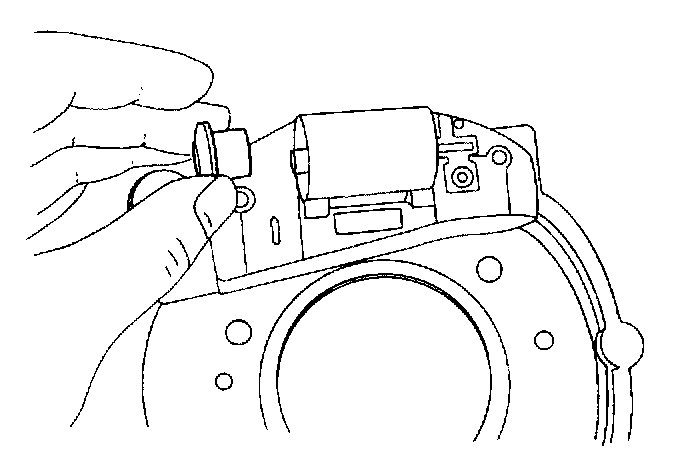 12. Install the new pushrod into the tappet. Ensure the pushrod is set correctly in the lever socket by holding the lever into the backing plate while inserting the pushrod and the tappet.