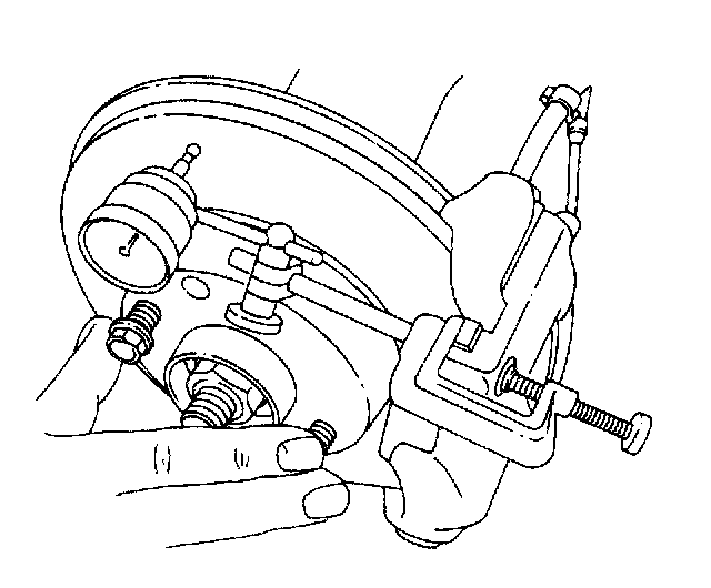 4. Fasten a dial indicator to the brake caliper.