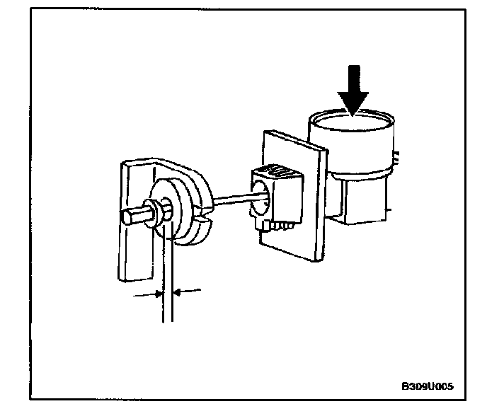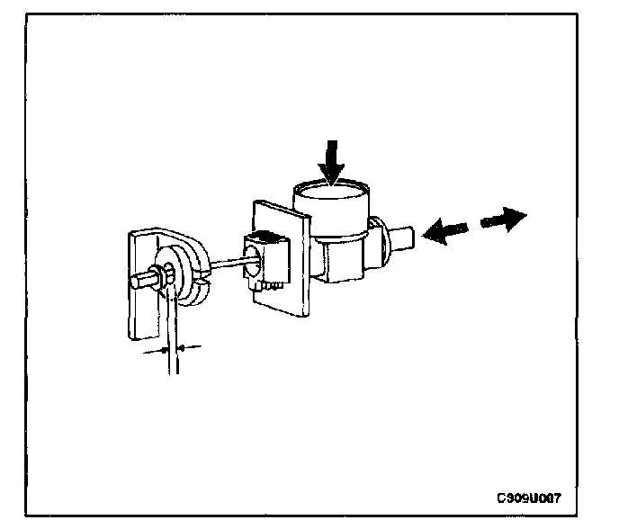 6. Press the cable release button and adjust the cable to achieve a gap of 0.5 mm (0.02 inches) between the bushing and the nipple of the ball.
