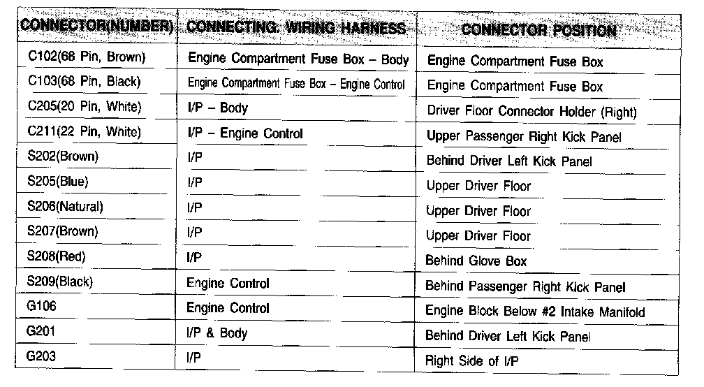 Connector Information Chart: