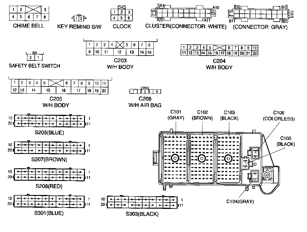 Connector Identification Symbol & Pin Number Position: