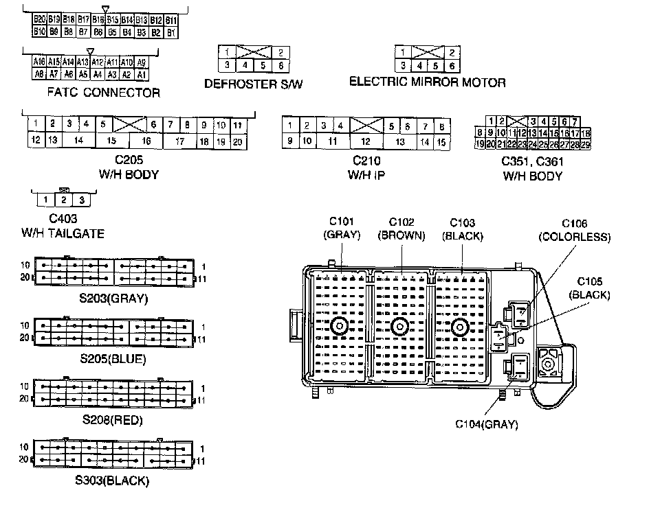 Connector Identification Symbol & Pin Number Position: