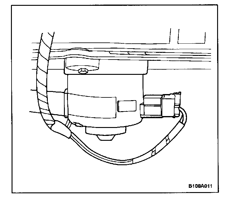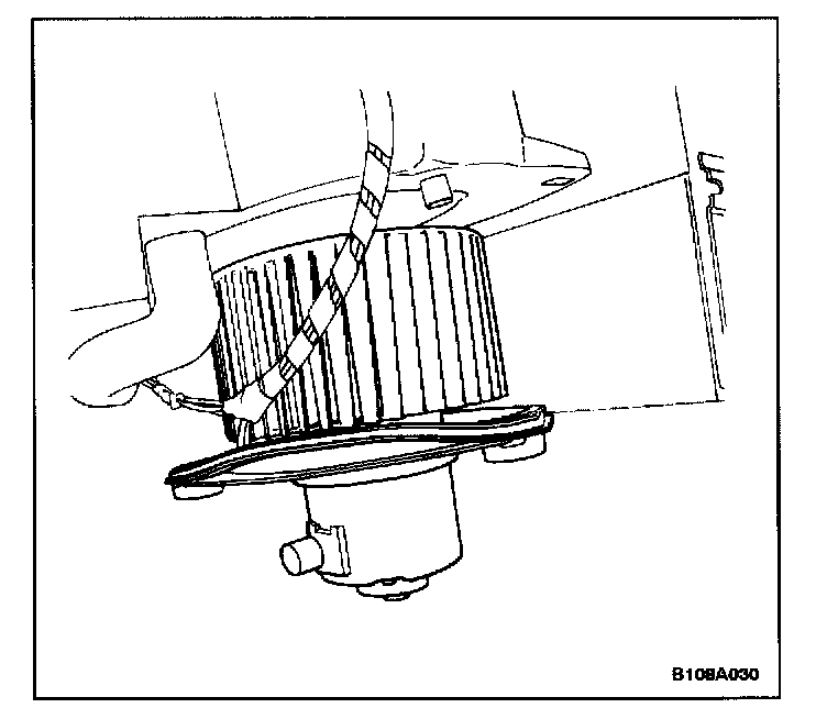 1. Install the blower motor and the seal with the shock mount pads in the heater/air distributor case. Hold the blower motor in position.