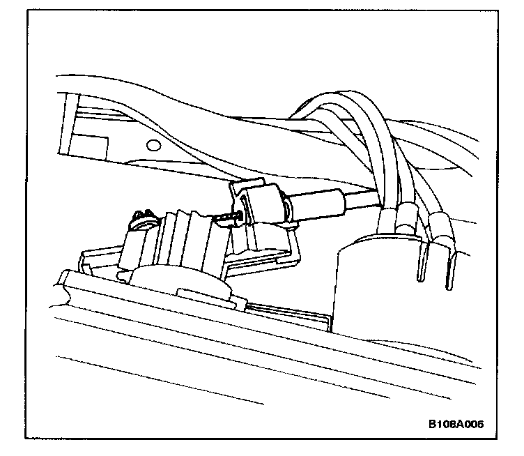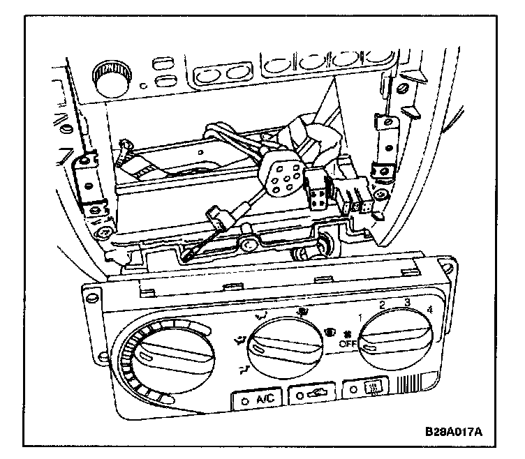 5. Disconnect the temperature control cable by gently prying the cable eyelet from the post on the controller. Unsnap the cable housing from the mechanical slide. Note the location of the cable and the housing for ease of installation.