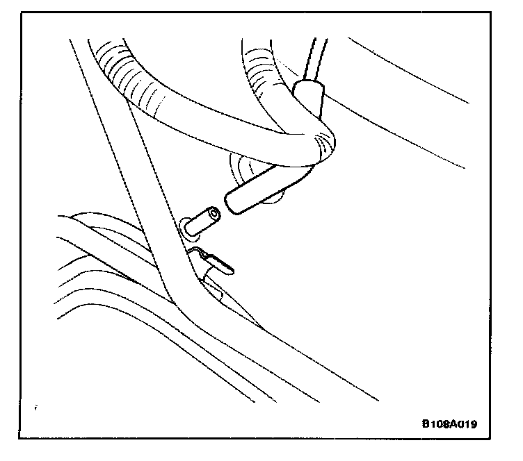 8. Remove the heater/air distributor case screw located above the fuel filter on the engine compartment side of the bulkhead.