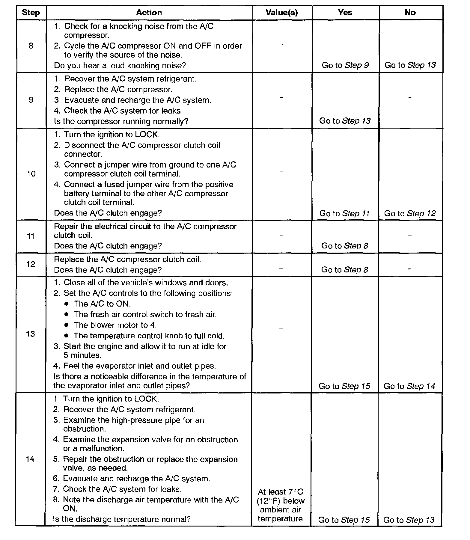 IMPORTANT: Perform this test under garage conditions with the air temperature at 21 - 32 °C (70 - 90 °F), and no sun load. Follow this test carefully for accurate results.