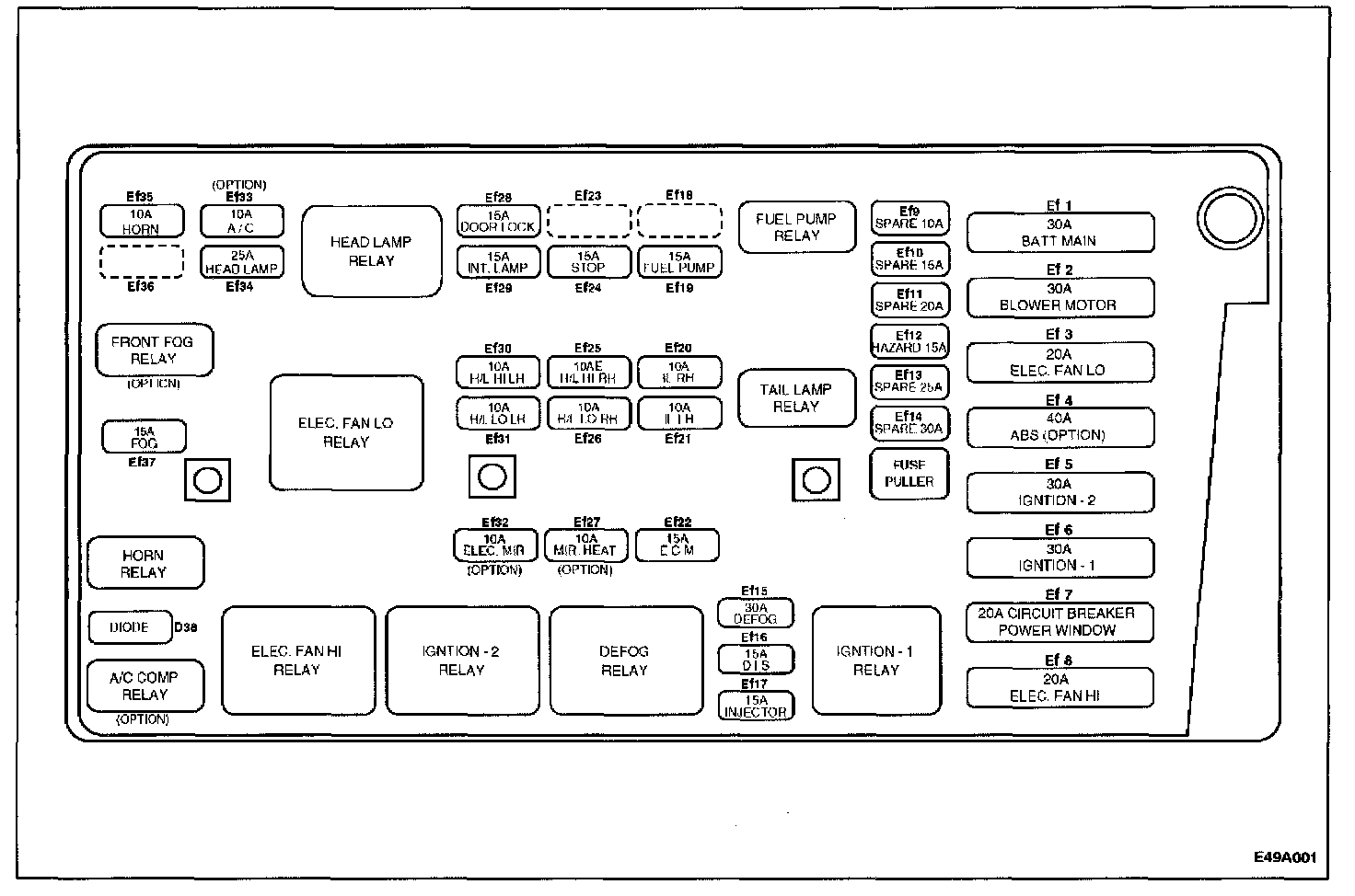 Position Of Relay And Fuse - Front & Rear View: