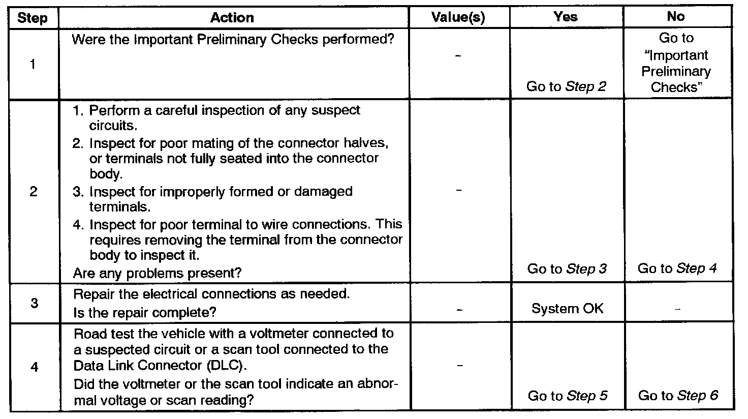 IMPORTANT: Do not use the DTC tables for intermittent problems. A fault must be present in order to locate the problem. It a fault is intermittent, use of DTC tables may result in the replacement of good parts.