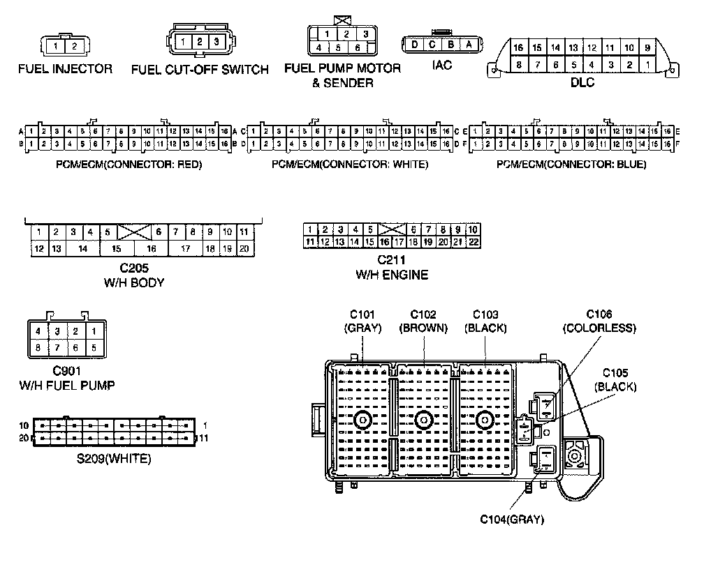 Fuel Pump, Injector, IAC & Fuel Cut-Off Switch Circuits