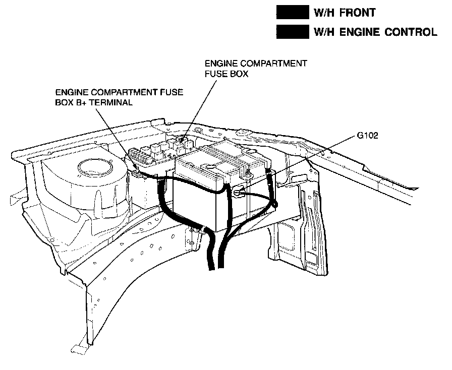 Position Of Connectors And Grounds - Engine Fuse Block: