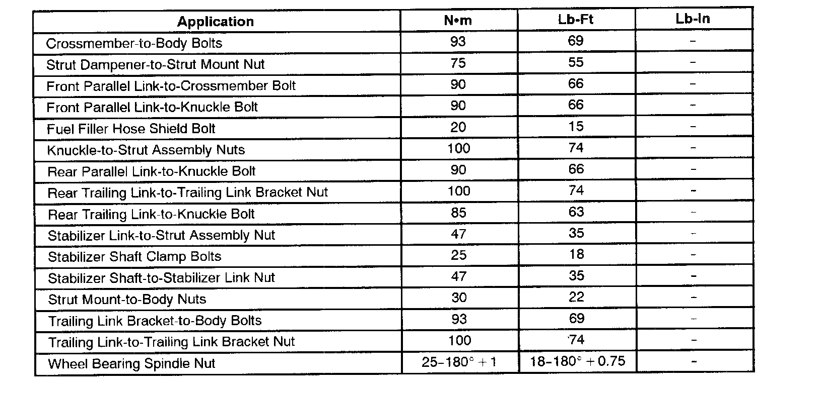 FASTENER TIGHTENING SPECIFICATIONS