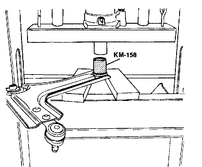 4. Press out the control arm front damping bushing using a press and the remover/installer KM-158.