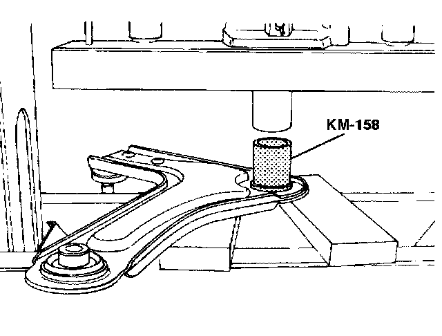 1. Press the control arm rear damping bushing into the control arm using a press and the remover/installer KM-158.