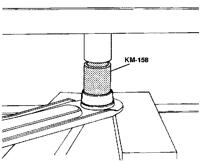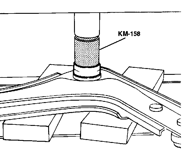 2. Press the control arm front damping bushing into the control arm using a press and the remover/installer KM-158.