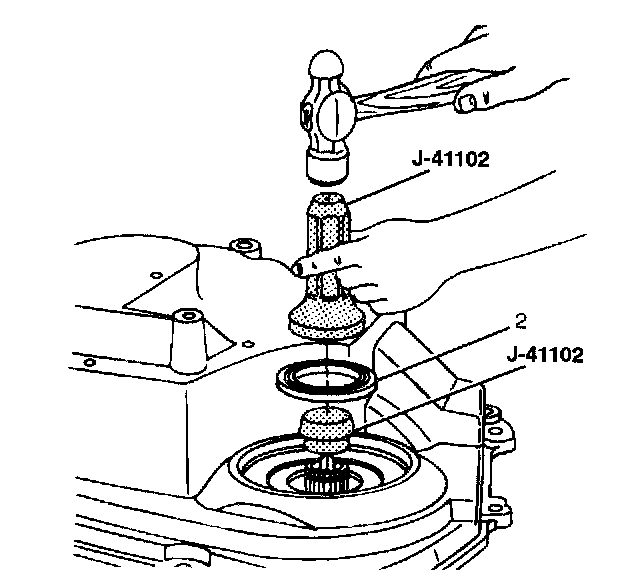 1. Install the transaxle drive seal (2) using the axle seal installer J-41102.