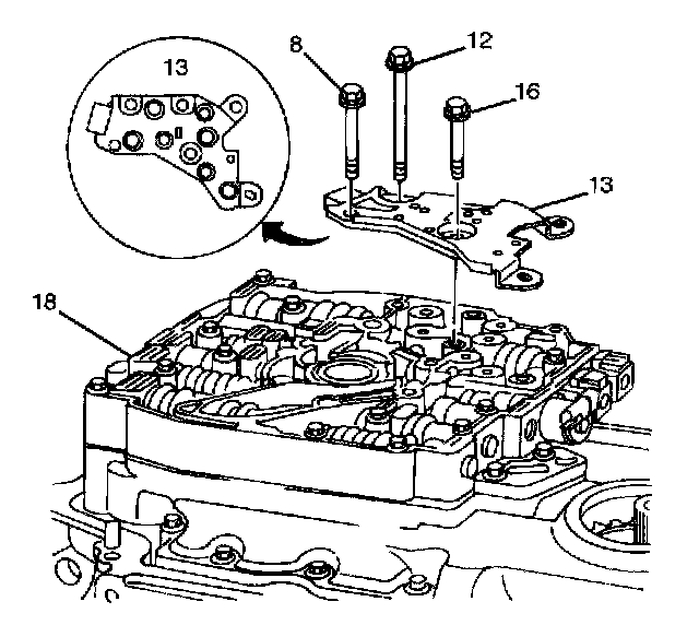 2. Install the control valve body assembly (18) onto the transmission.