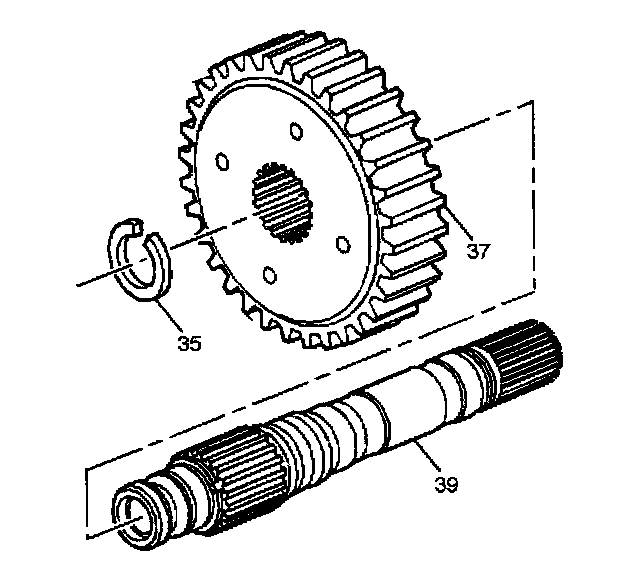 3. Retain the drive sprocket with the turbine shaft to drive sprocket snap ring (35).