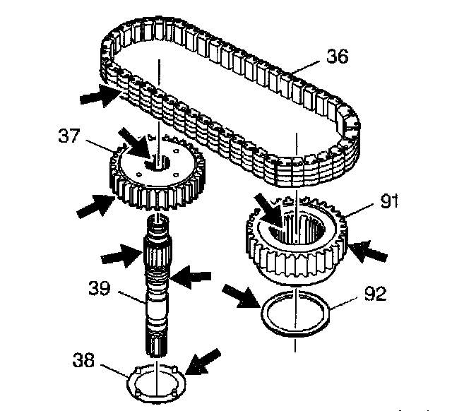 5. Inspect the drive sprocket, the driven sprocket, the drive link assembly, and the turbine shaft for damage or excessive wear.