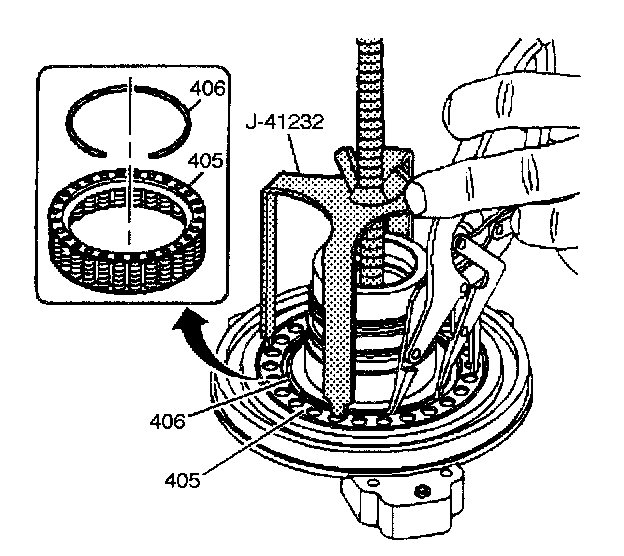 3. Compress the 2nd clutch spring and retainer assembly (405). Use the J 41232.