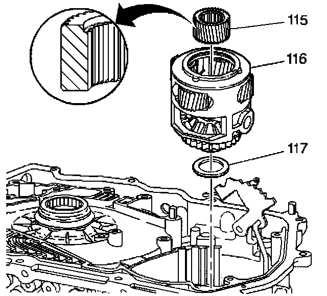 3. Install the final drive sun gear (115) into the final drive carrier (116).