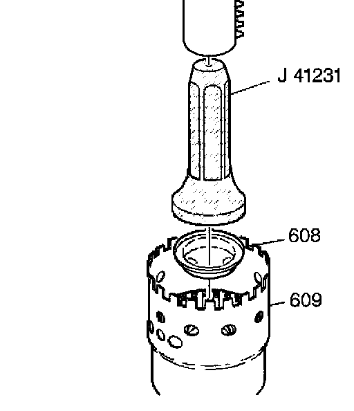 1. Assemble a new inner seal assembly (608) if the old seal was damaged and removed. Use an arbor press and the J 41231 in order to press the inner seal assembly onto the forward clutch housing (609).